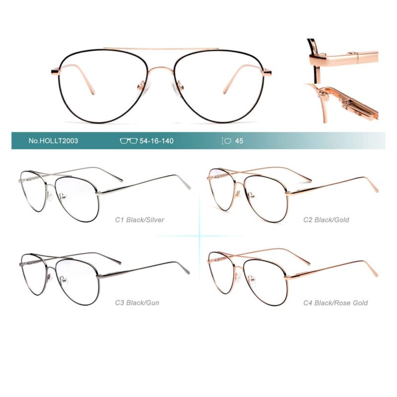 This style is new arrival. The edge of the frame is two layers of metal. The surface metal has two colors. This makes the eyeglasses not too rigid and more fashionable.