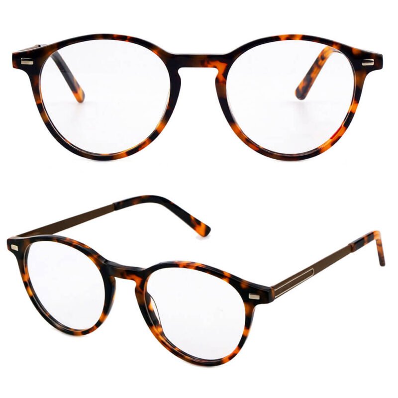Round frame acetate optical glasses tortoise thin frame glasses with metal
