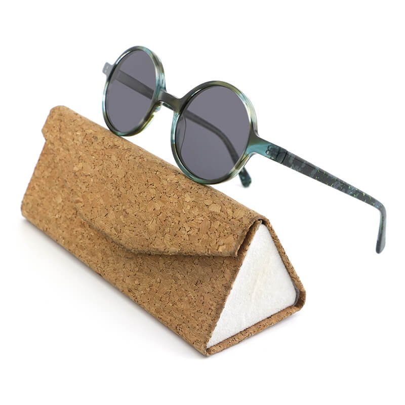 Design process ideas thin green tortoise acetate frame with thin temples grey round polarized lens