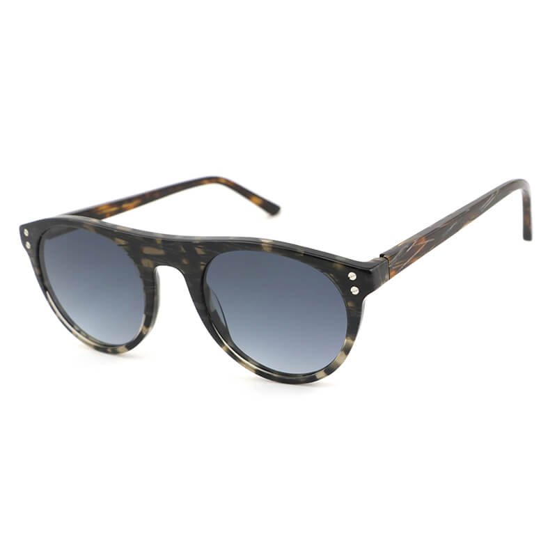 Unique design mens womens round lens acetate pattern sunglasses with rivets