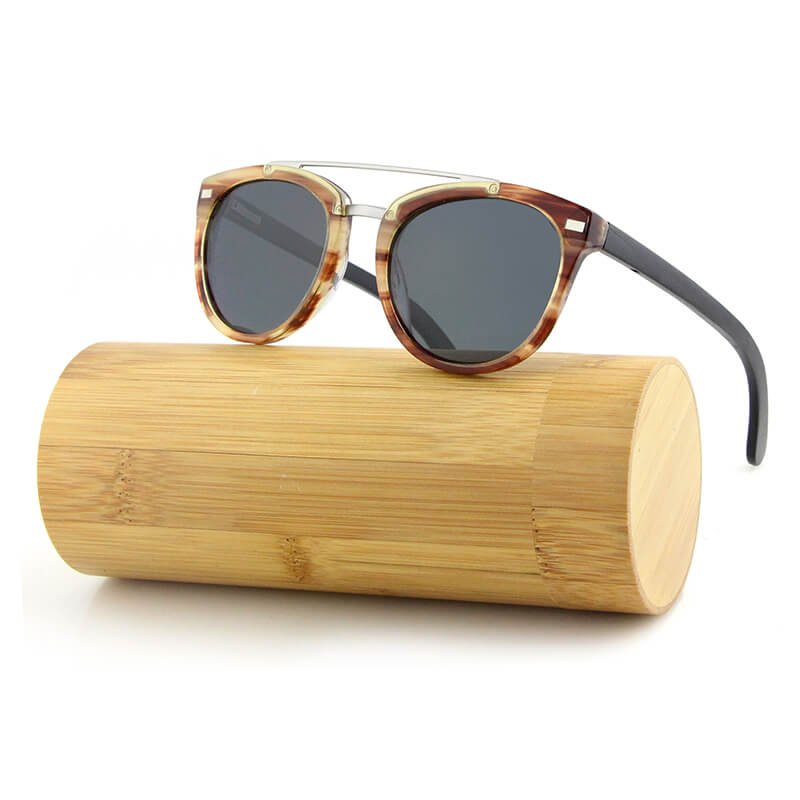 Above all, Ebony/Zebra Laminated Wood Sunglasses. Then the polarized lens color is black, brown, gold, and so on. Then, the logo can be customized according to customer requirements.