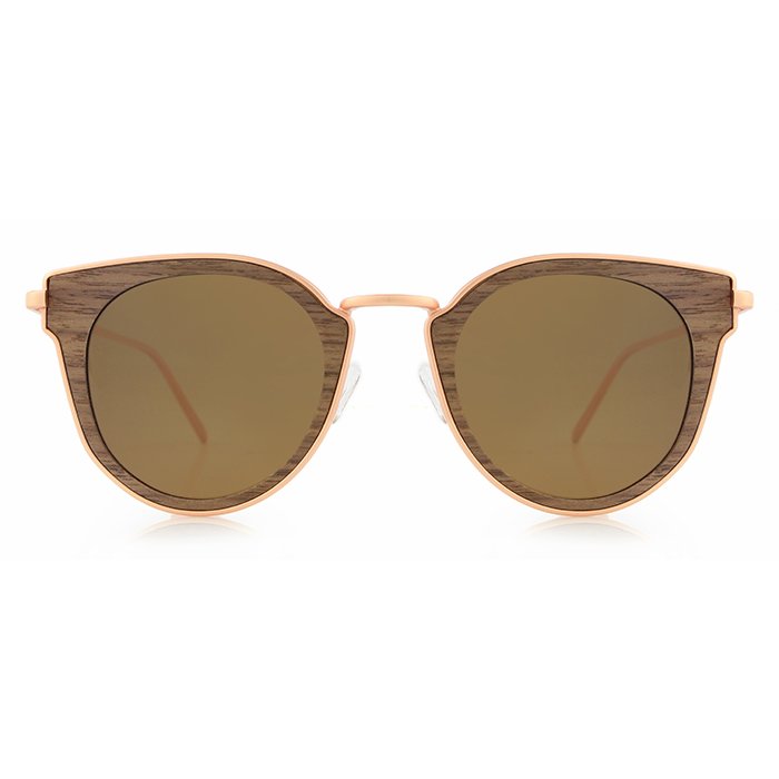 Above all, Rosegold Metal Walnut Wood Sunglasses. Then the polarized lens color is black, brown, gold, and so on. Then, the logo can be customized according to customer requirements.
