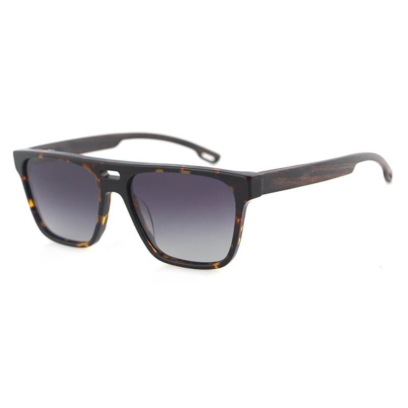 Above all, Plastic brown frame | zebra wooden legs Glasses. Then the polarized lens color is black, brown, gold, and so on. Then, the logo can be customized according to customer requirements.