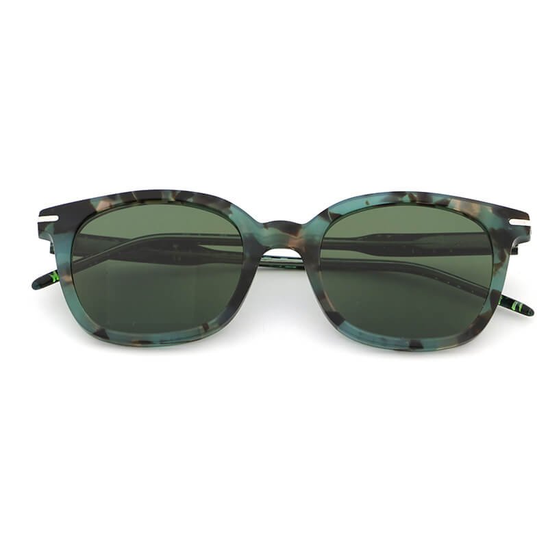 Beauty acetate pattern thin frame shadow sunglasses in green acetate with green shaded lenses