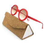 Classic retro style gradient clear brown lens red acetate round circle womens sunglasses