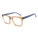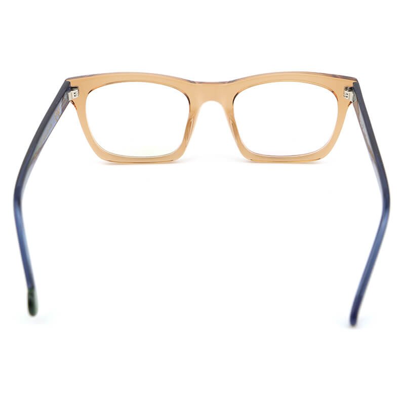 clear brown acetate frame and clear blue temples