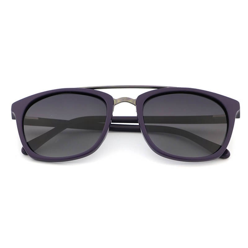Dark purple metal double bridge custom logo designer womens mens acetate square sunglasses