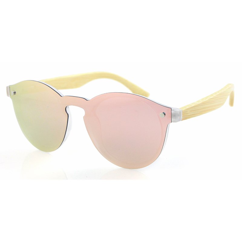 Full Mirror Transparent Frame Natural bamboo Sunglasses