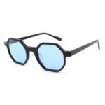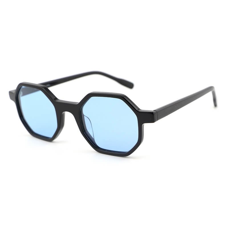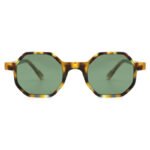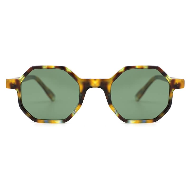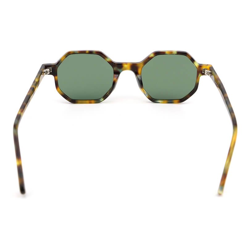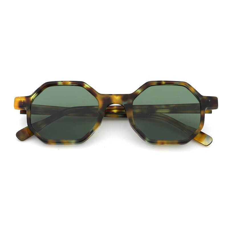 Factory unisex grey polarized lens thin acetate hexagon frame tortoise sunglasses