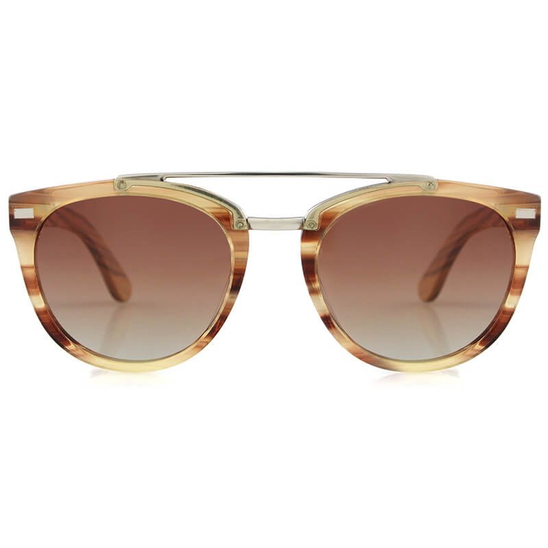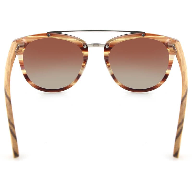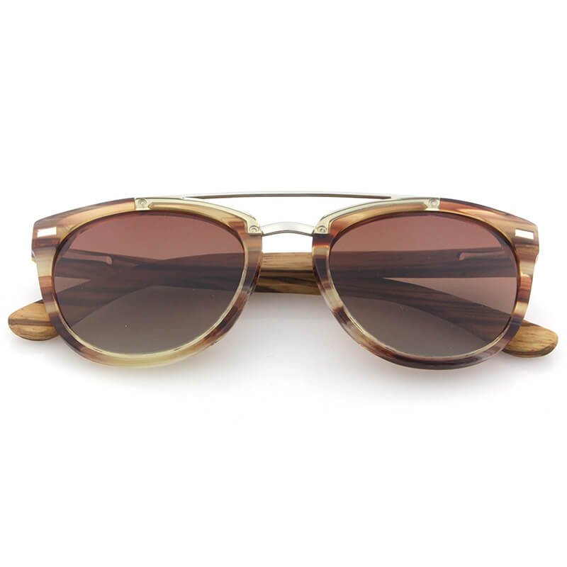 Fashion double bridge wood temples polarized women men light tortoise brown acetate sunglasses