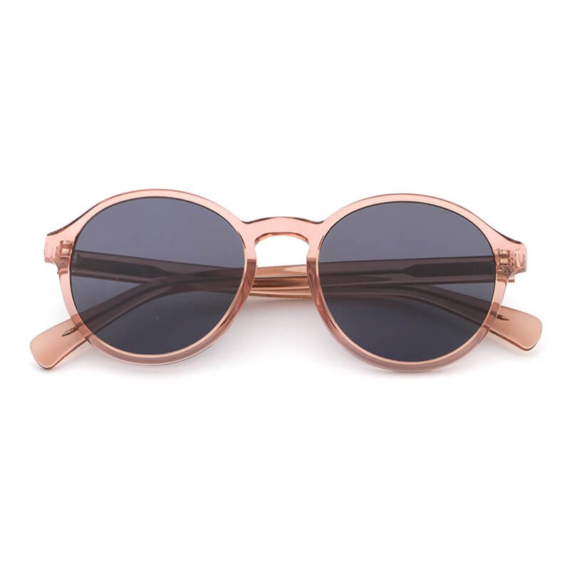 Fashion high quality womens round sun glasses clear acetate pink sunglasses