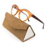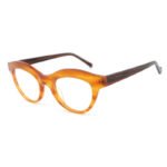 clear orange acetate frame and brown temples