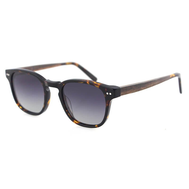 Fashion women mens polarized wood shades round acetate sunglasses in tortoise shell