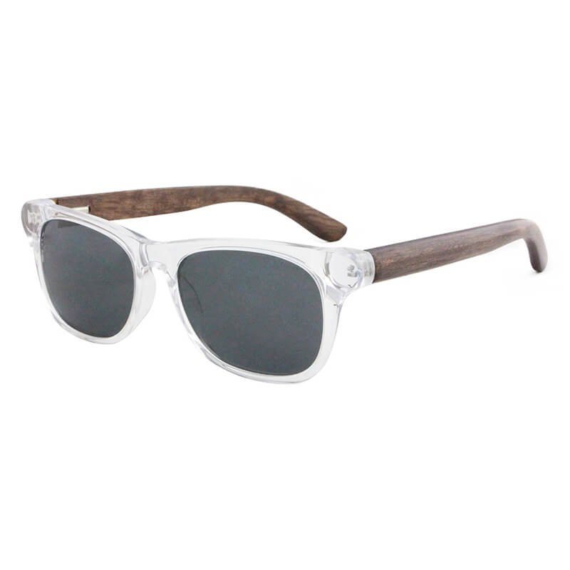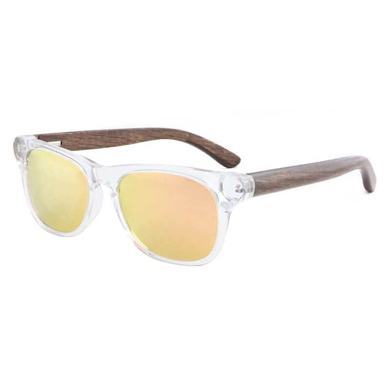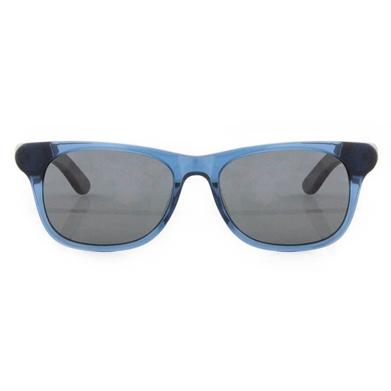 Fashion women polarized wooden temples sun glasses with transparent blue frames shades sunglasses