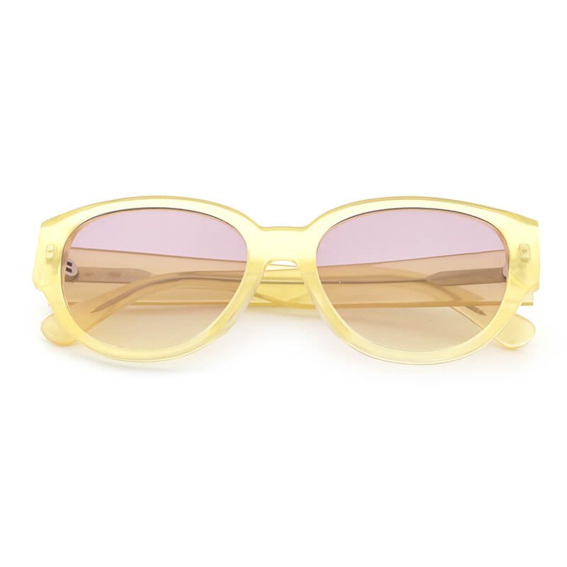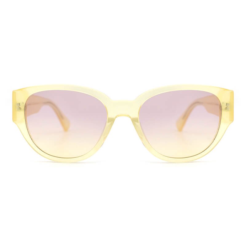High quality women ladies pink lens square transparent acetate clear yellow sunglasses