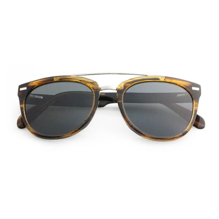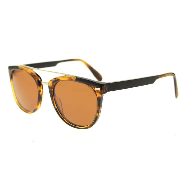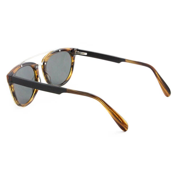 Hot sale womens double bridge brown lenses sunglasses with black brown acetate frames