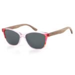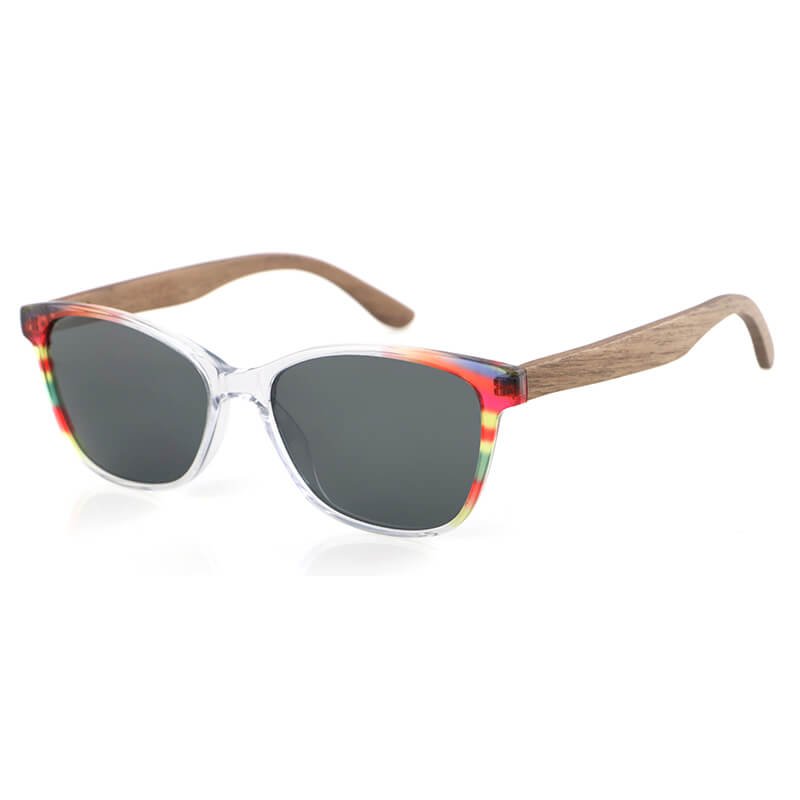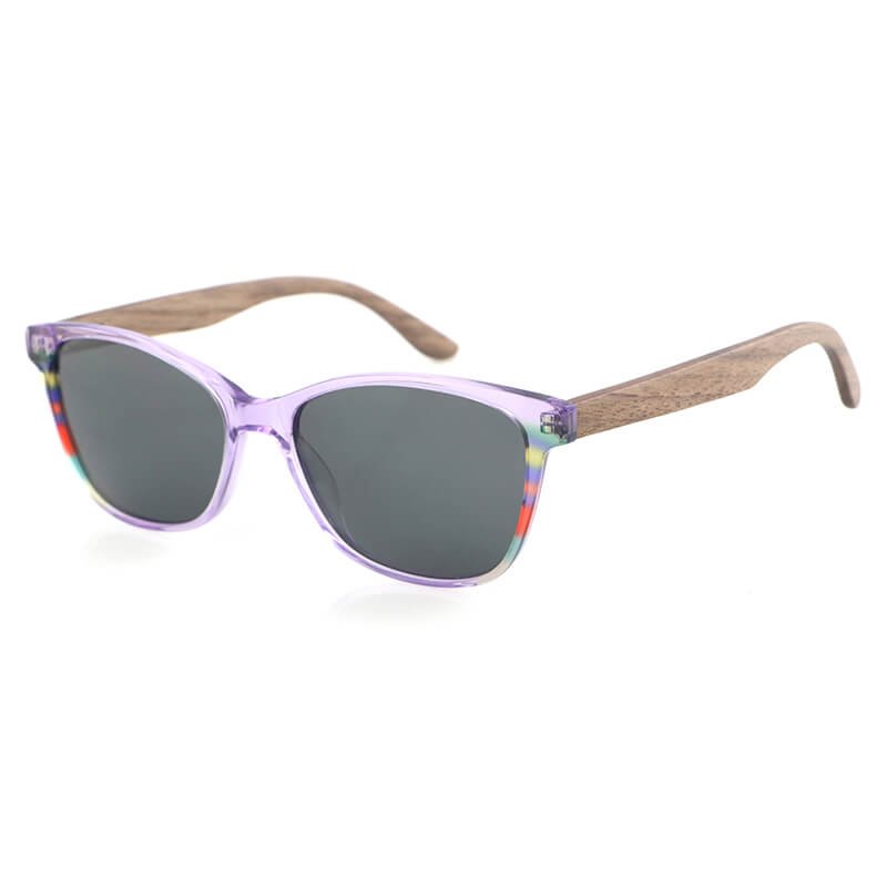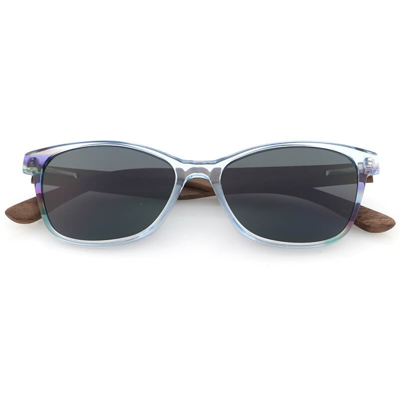 Mens polarized rectangle solid wood temples unisex clear transparent acetate frame sunglasses