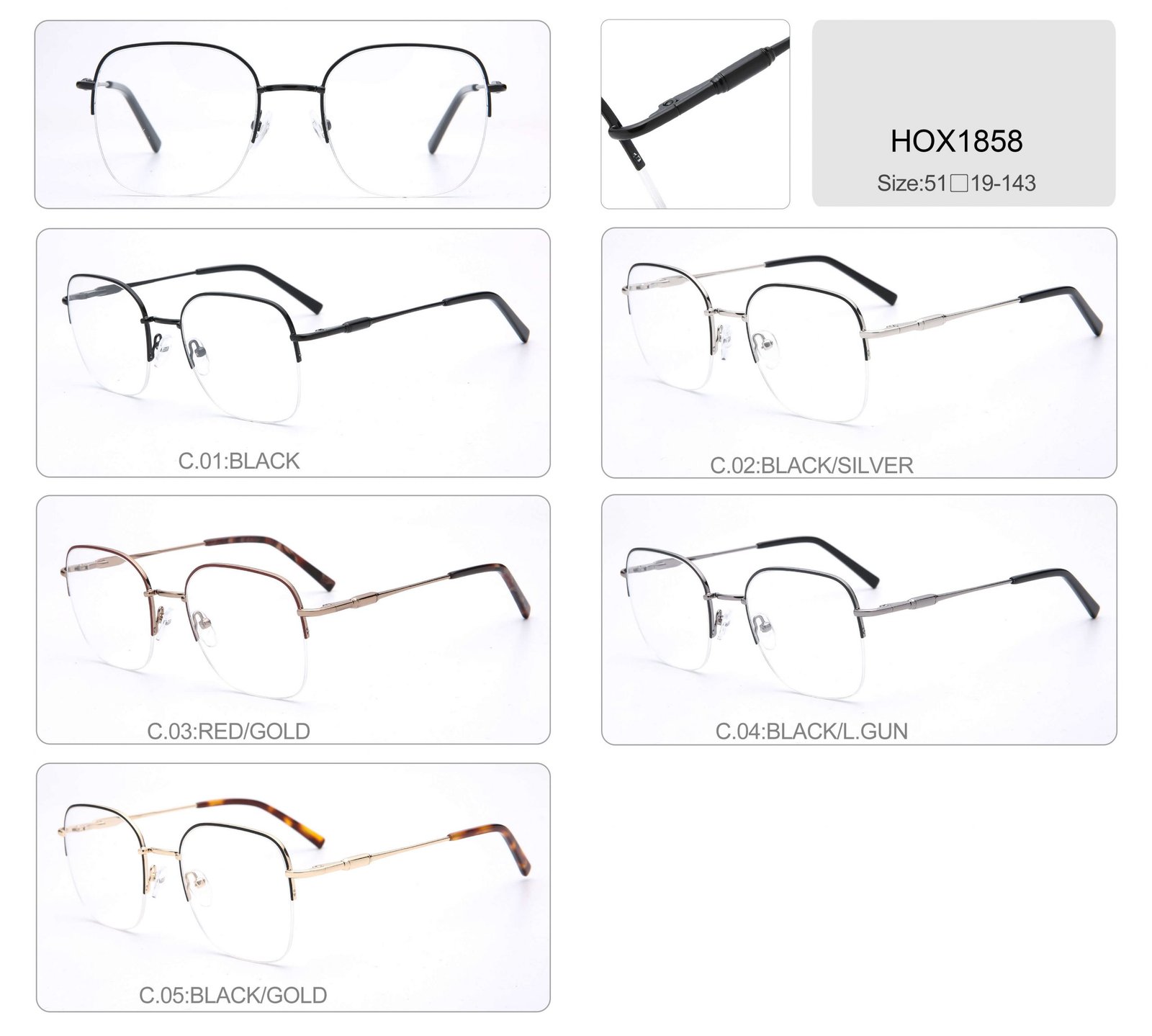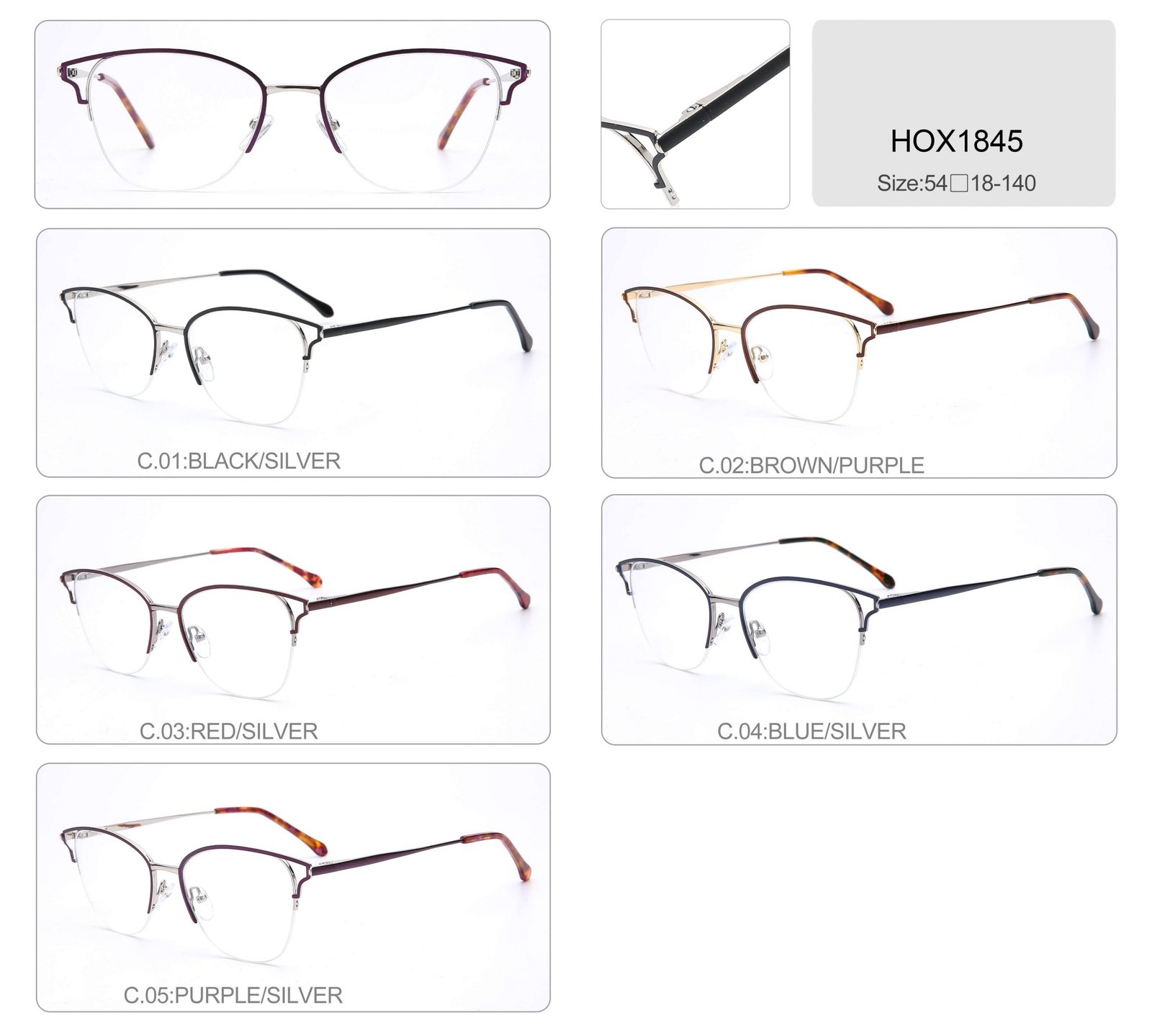 Tags eyeglasses, frame, glasses, metal, ODM, optical, rectangle, semi rimless, stainless steel, women