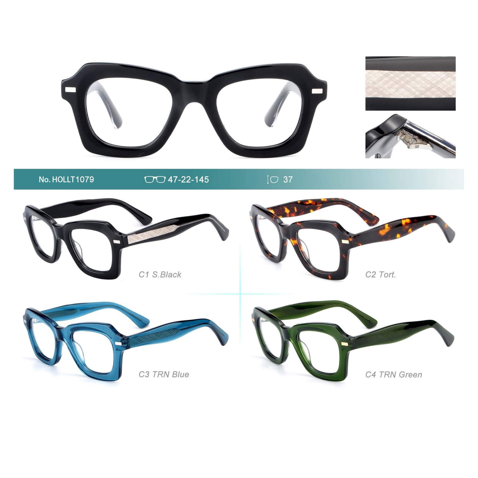 Frame and temples material : Regular acetate, recyclable acetate, bio acetate