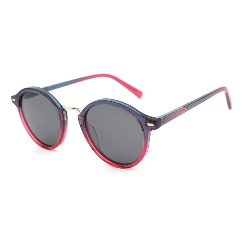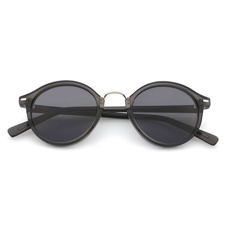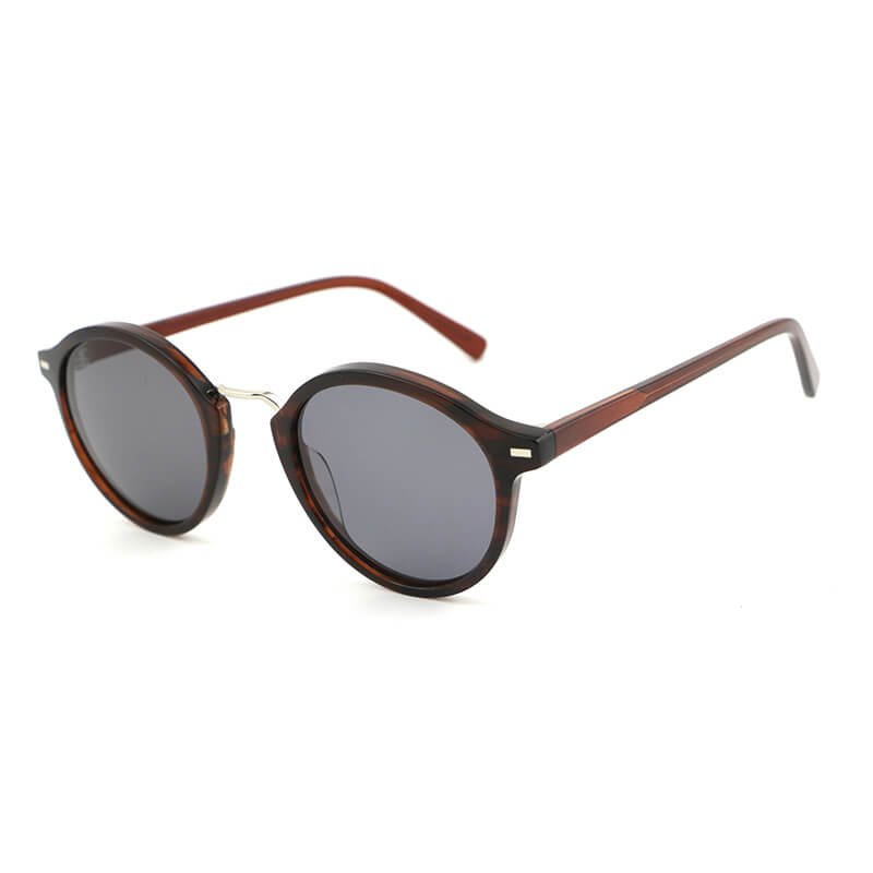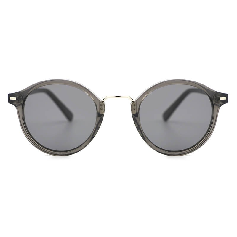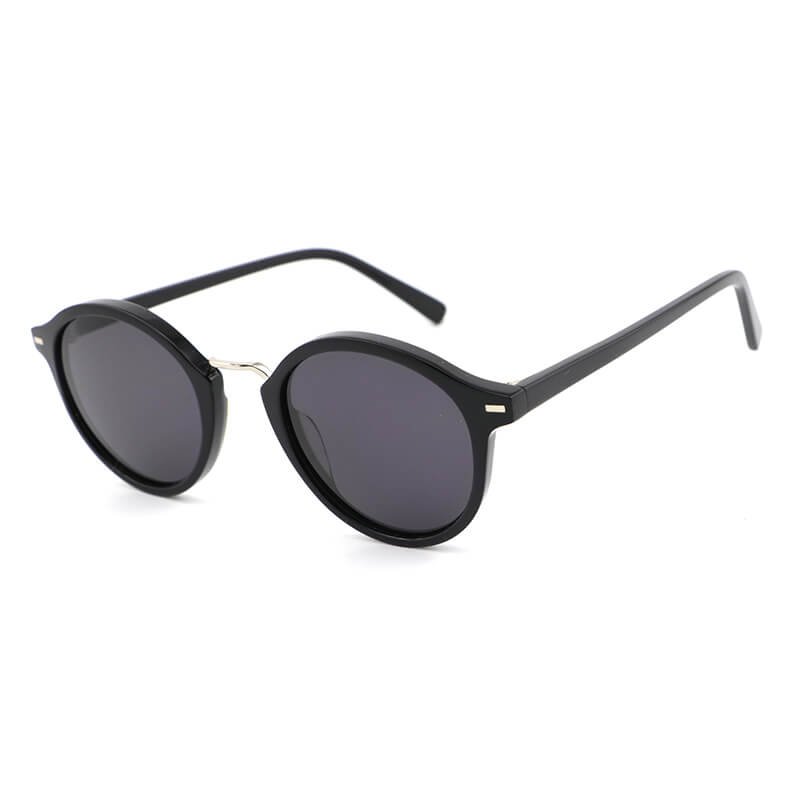Round lens acetate temples polarized sunglasses with metal bar acetate frame front