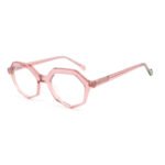 Transparent pink irregular hexagon womens mens clear frame designer eyeglasses
