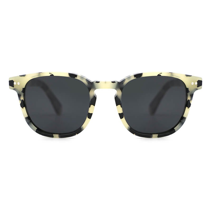 Trendy vintage square black and white acetate frames shades polarized sunglasses with shield
