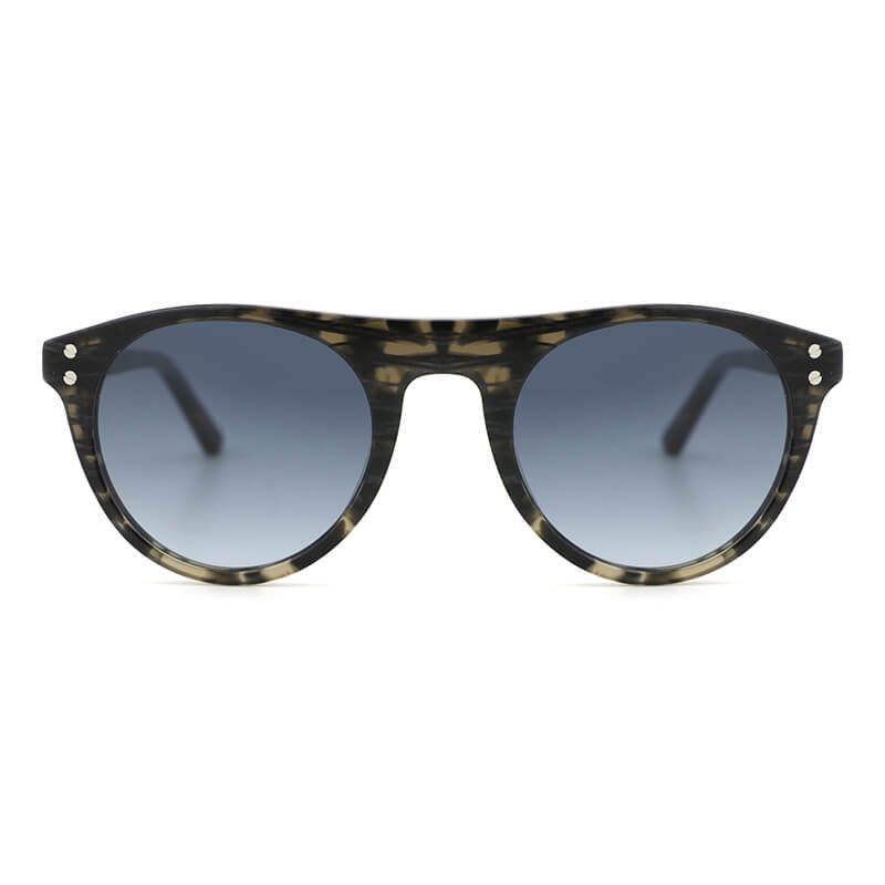 Unique design mens womens round lens acetate pattern sunglasses with rivets