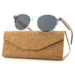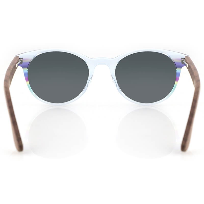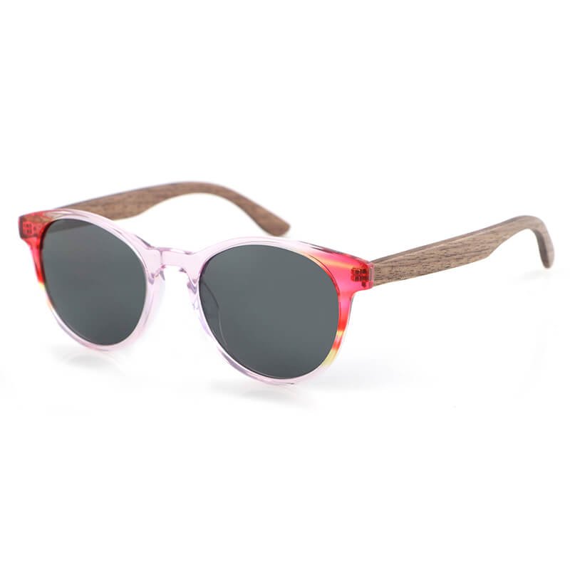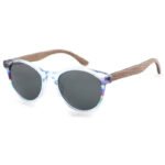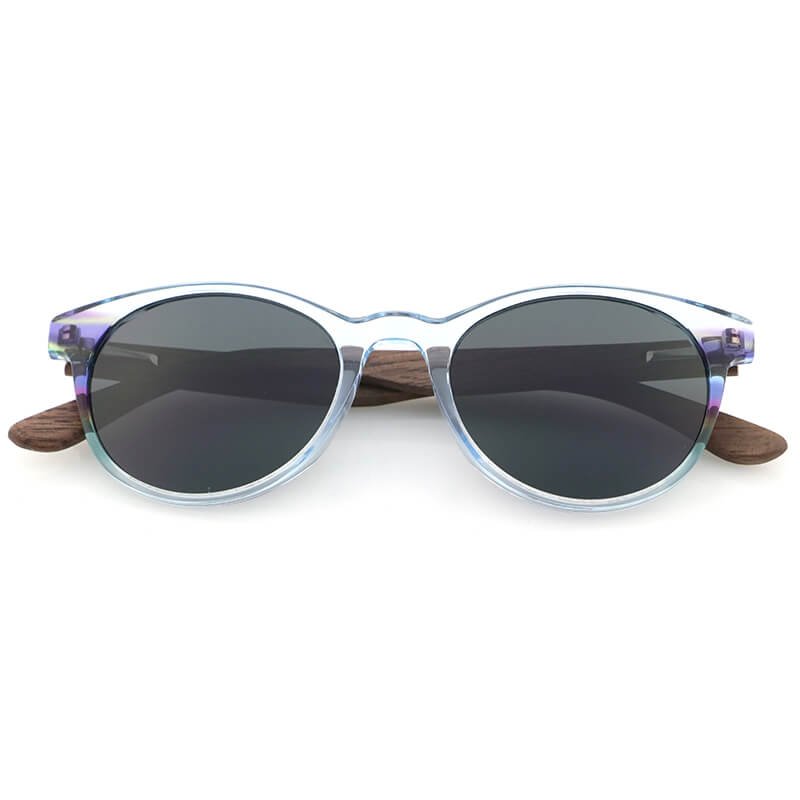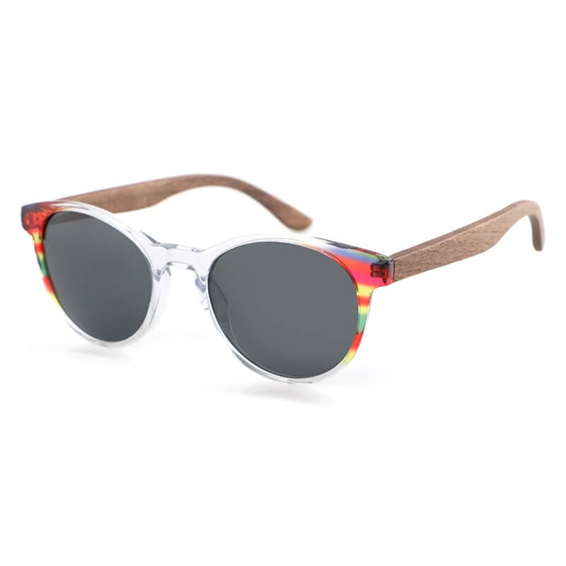 Wholesale wooden temples custom womens round sunglasses clear acetate with colorful side