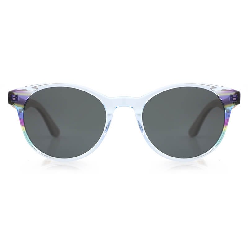 round cat eye transparent clear light blue acetate frame with colorful side