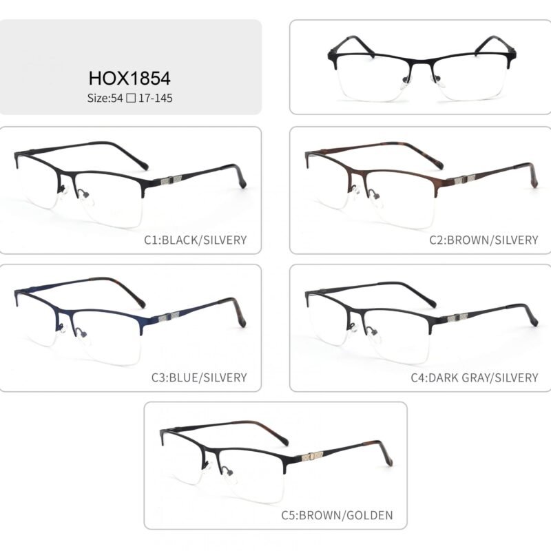 Classic metal optical frame glasses mens rectangle semi rimless eyeglasses